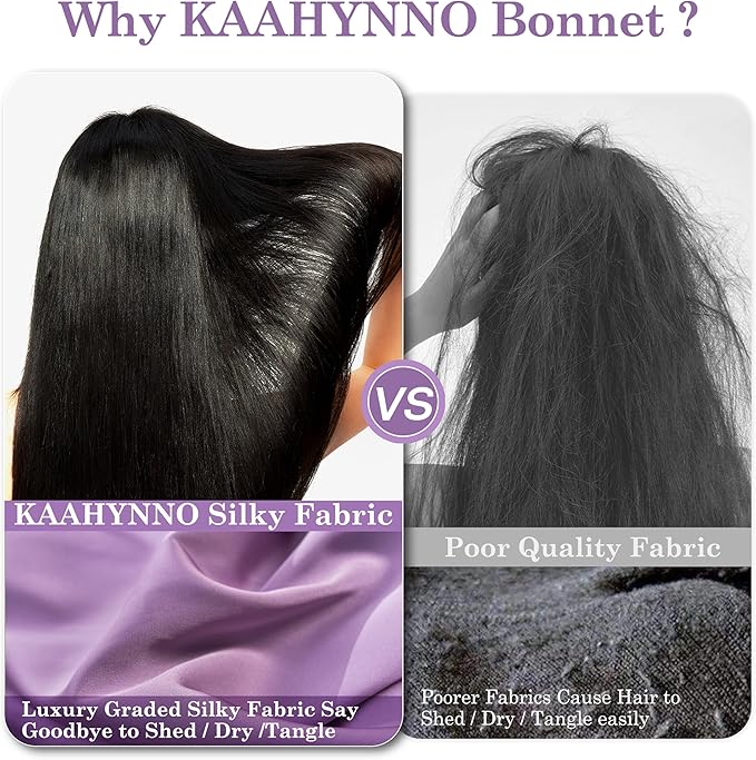 - All Hair Types Covered: This double-layer silk bonnet is designed for sleeping women to help protect curly, straight, coily, and wavy hair during sleep or after a shower. Whether your hair is long, short, thin, or thick, this large sleep bonnet help reduce frizz, tangles, and breakage, making it ideal for curly hair or braids.