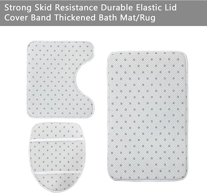 - 【Easy Install】 Each package provides 1 shower curtain(72Wx72H) ,12 plastic Hooks, 1 bath mat (30"LX17.7"W), 1 oilet lid cover (17.3''LX14.1''W), 1 U-shaped cushion (14.5"LX17.1''W).There are metal grommets on the top, and the shower curtain can be hung on the pole quickly by using curtain rings.When you want to clean or replace the shower curtain, it can be removed easily.