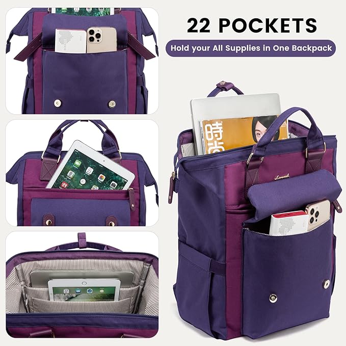 - Stylish & Functional Design : This laptop backpack for women combines elegance with practicality. Featuring padded compartments for laptops and tablets, it keeps devices safe while maintaining a sleek design. Adjustable straps ensure comfort, and the wide opening with smooth-gliding zippers offers easy access to items. Perfect as a teacher bag or nurse bag.