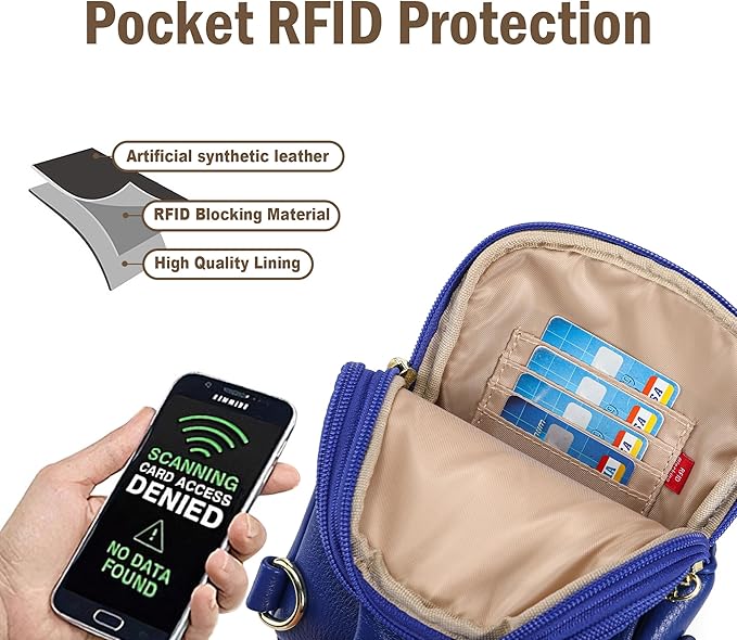 - RFID Blocking:The front zipper pocket of this rfid blocking bag has four card slots built inside, which are made of proprietary shielding materials. These card slots can effectively block RFID signals and protect your personal cards from unauthorized access