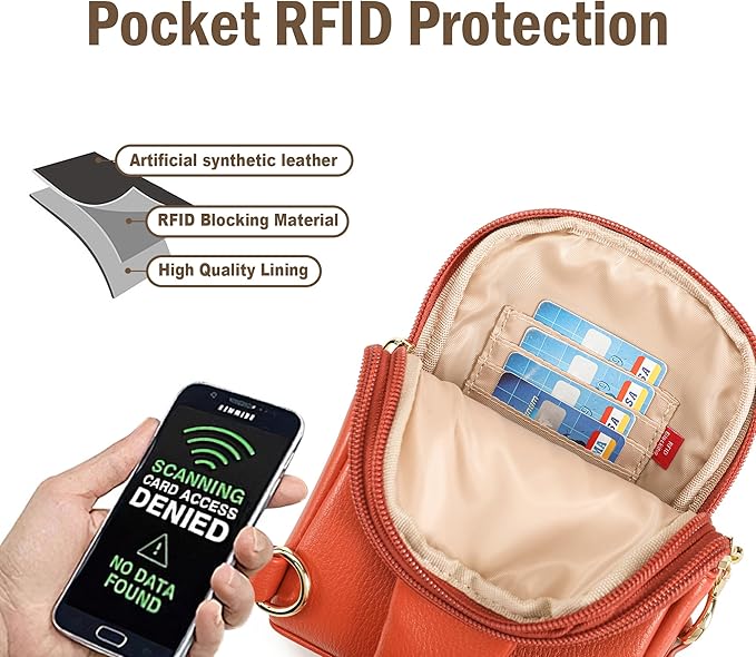 - RFID Blocking:The front zipper pocket of this rfid blocking bag has four card slots built inside, which are made of proprietary shielding materials. These card slots can effectively block RFID signals and protect your personal cards from unauthorized access