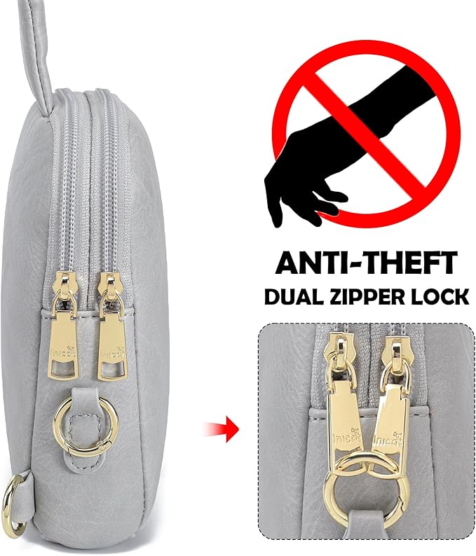 - Antitheft Design: Crossbody travel bag Equipped with an anti-theft dual zipper lock, it prevents the items in your rfid travel purse from being easily stolen or dropped. The 2 D-ring design on the back allows for easy carrying