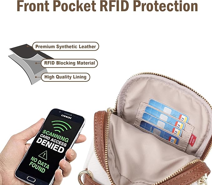 - RFID Blocking:The front zipper pocket of this rfid blocking bag has four card slots built inside, which are made of proprietary shielding materials. These card slots can effectively block RFID signals and protect your personal cards from unauthorized access