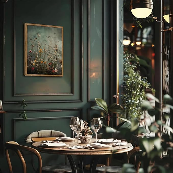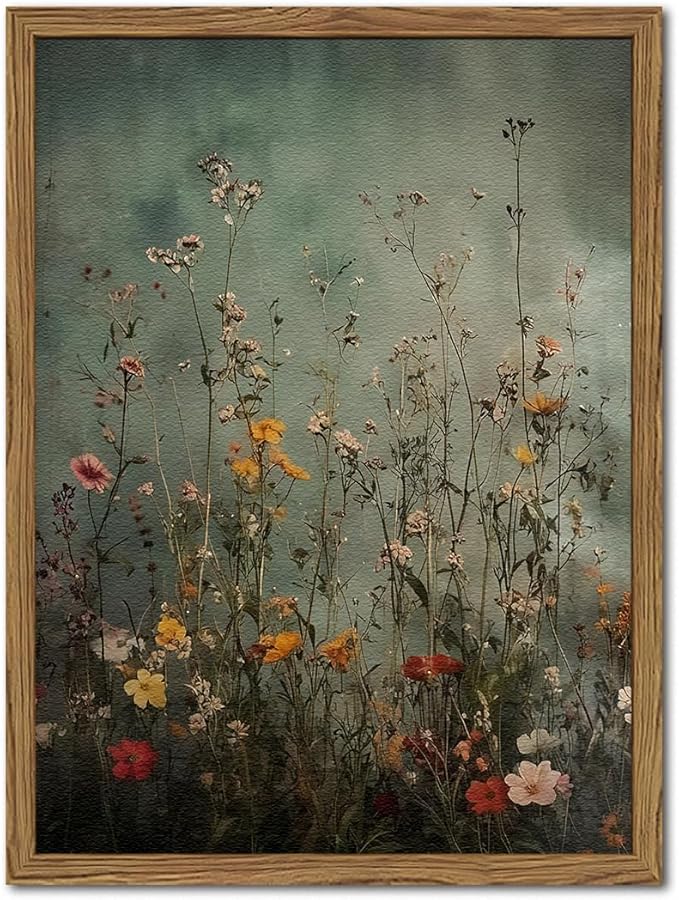 - Vintage Wildflower Decor: Bring the beauty of nature indoors with this rustic wildflower field artwork, featuring soft green tones and colorful hand-drawn blooms. The vintage botanical design adds warmth and charm to farmhouse, cottagecore, or country-inspired interiors