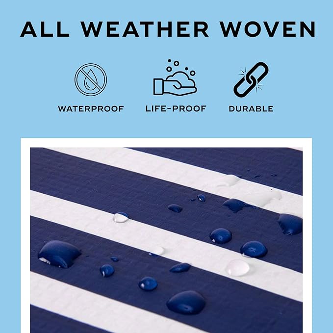 - ALL-WEATHER WOVEN fabric is made of interwoven polypropylene creating a light, but strong and water-resistant material (like a tarp). This durable, easy-clean fabric holds its shape when wet, dries fast, and softens with wear